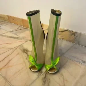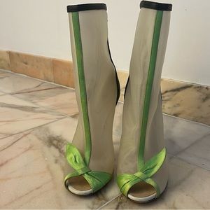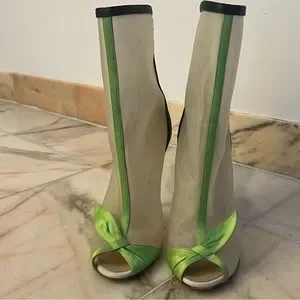 Ankle boots with Detailed Silk Green bow in front and open toe