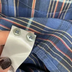Blue plaid CH3276 (100% cotton) “classic fit”- extra buttons attached to inside seam tag