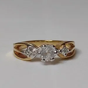 Vintage Gold Tone And Clear Stone Ring Size 5.75. Has A Fair Amount Of Wear As Pictured. Pretty Ring!! Check Out My Closet For Other Great Items!!! Thank You For Considering Making A Purchase.