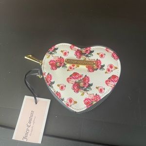 NWT. 💕Juicy 💕Couture | White Varsity Blooms Heart Coin purse.