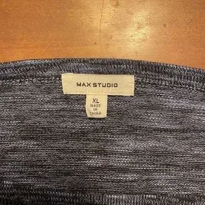 Max Studio Women’s Shirt, Size XL, front tie at bottom of shirt, black and blue pattern, never worn. Super cute and comfy!