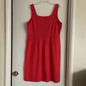 Coral color sleeveless dress.