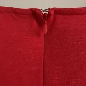 Back zipper with hook and eye closure.