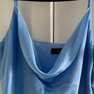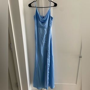 Lulus Formal Invitation Light Blue Satin Cowl Neck Maxi Dress in Size medium, XS. Worn once and in perfect condition. Purchased two months ago. I also have a size small & medium! Originally purchased for $88