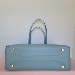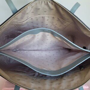 BRAND NEW WITH TAGS. Ocean Beach color. A stylish large Tote with roomy interior for easy organization for everyday wear from home to work. Designed with multiple interior pockets for added storage and easy organization plus an exterior back slip pocket for easy access. Features a center pouch for an iPad or laptop. Crafted from crossgrain leather with top-zip closure.