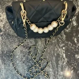 This beautiful bag can be worn over shoulder with the chain or by hand with the pearl handle.