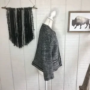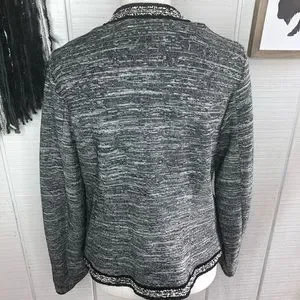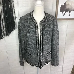 Talbots black and gray marled open front blazer. Excellent used condition. Size L petite. Could easily fit a small/medium. Feel free to ask questions 🙂