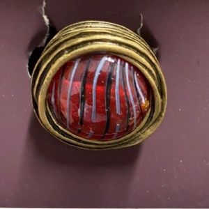 This ring is a Statement piece of stunning jewelry. The size says Small but I think it’s a 7 or 8. But a ring like this can be worn on any finger. It’s center stone is hand blown, crystal glass encased in brass. It’s antique finish and the light refraction of the glass combines to make this a masterpiece. I bought it on sale for $20 and I am selling it brand new for $14 which is the lowest price on the internet. Check it out: only reason it is temporarily priced so low is because I am trying to become a Posh Ambassador and need to reach sales goals. Take advantage today & enjoy❣️