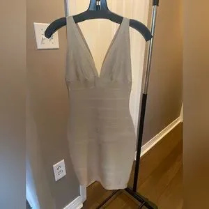 Herve Leger Champagne Gold Foil Knit Dress