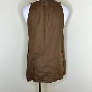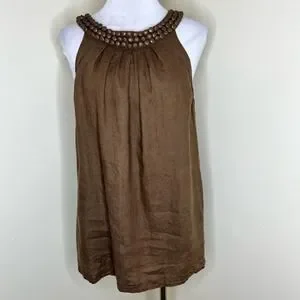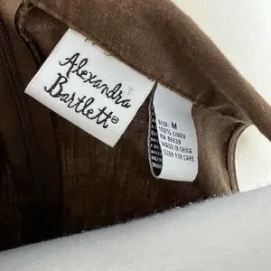 Alexandra Bartlett 100% Linen Top MEDIUM Brown Woven Summer Lagenlook Pleated