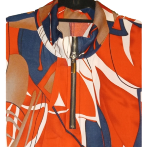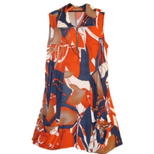 Vintage Women's Funky Abstract Print Front Zip Midi Dress Sz L