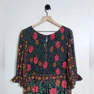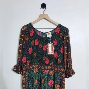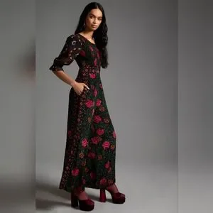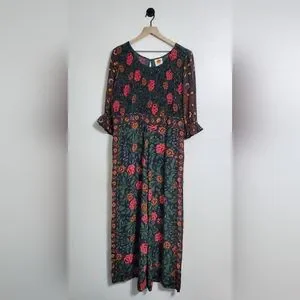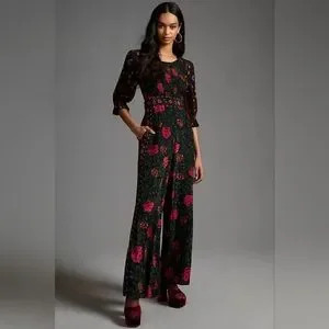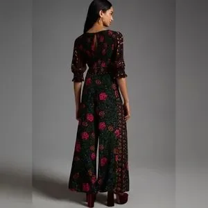 New with tags Farm Rio for Anthropologie Smocked Jumpsuit In Black Motif Size Extra Large.