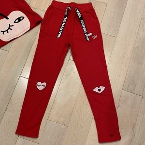 New without tags condition no flaws, beautiful very soft cotton girls joggers cherry top red set size 8 true to size Sonia Rykiel Paris designer