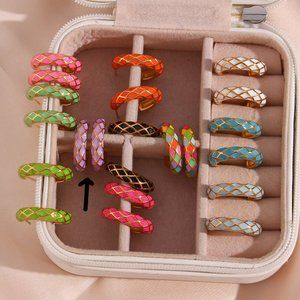 Lilac Purple Enamel Geometric Pattern Hoop Earrings 18K Gold Plated Stainless