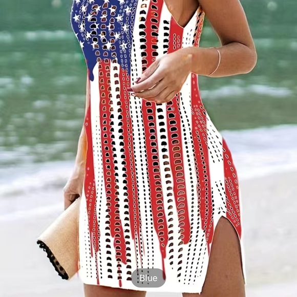 New with tags! Patriotic split crocheted red/white/blue American flag swim cover-up. Size Women’s XL-XXL. See size guide!