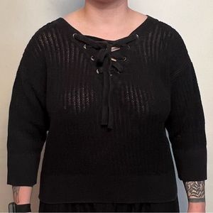 Gap, Gap for Good, chunky sweater with metal and tie neck lining, crew scoop neck, black, size large, great condition