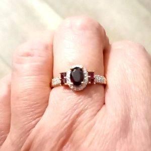Black Cherry Red Anthill Garnet center gem. 4 Cherry Red PYROPE GARNET side gems.