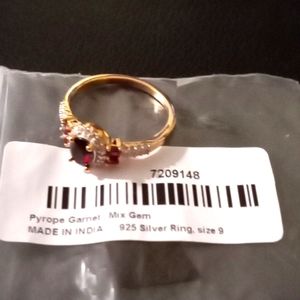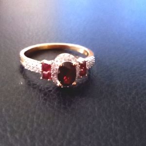 AMERICAN ARIZONA ANTHILL GARNET, PYROPE GARNET AND MOISSANITE RING