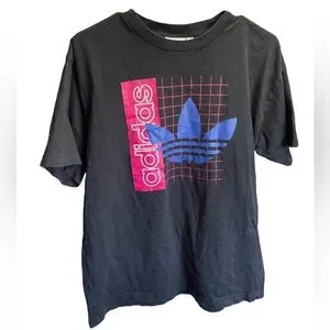 Adidas Men's Grid Trefoil "Black/Shock Pink/Team Royal Blue" Tee Sz Medium