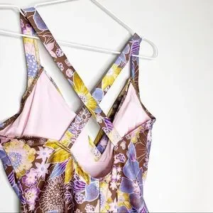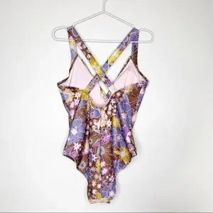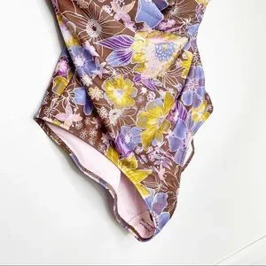 Anthropologie Alana Gunn Willandra Floral One Piece Swimsuit in Brown, Purple, and Yellow Floral. Size Medium. Brand new with tags attached.