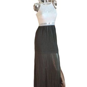 NWT IZ Byer Maxi Dress in Olive with Cream Lace Top