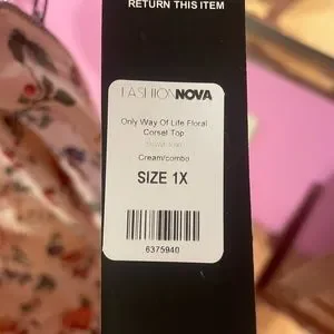 Brand new with tags fashion nova floral corset top. So pretty, zipper back. Got a size 1X as according to the size chart I’m a 14/16 bra size 40D and this is too small. Recommend it for a size 12/14 with a smaller bust.