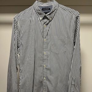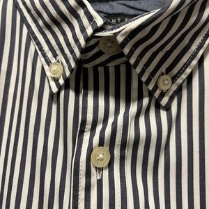 Love a button collar; makes it, not such a sloppy mess ....because my husband is terrible and folding clothes. I don't know why this shirt is in the sell pile cause I legit love it.