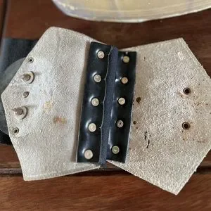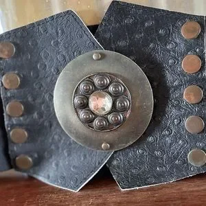 80’s wide elastic embellished buckle black belt. Timeless waist cinch belt, elastic will stretch up to 2”. Beautiful buckle details. Some wear to the buckle back area. Please, see pictures as part of description.