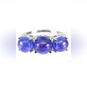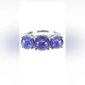 Unheated Round Tanzanite 8mm 14K White Gold Plate 925 Silver Ring 7.5 NWOT