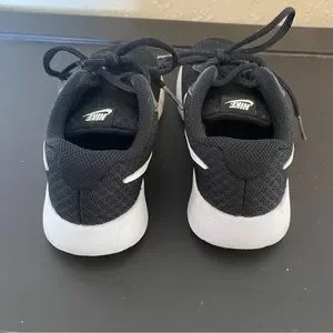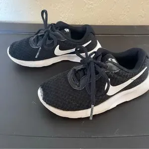 Black lace up Toddler 11c Nike shoes. Wear in the tip of the toe pictured