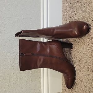 Cole Haan Brown Women's Size 9 boots. Pointed Toe. Stacked heel. Gently Used. Some Scuffing Due To The Nature Of The Leather.
