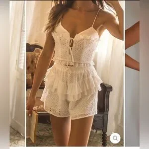 Runaway The Label Eyelet Embroidered IMOGEN SHORTS Ruffle White size S NWT