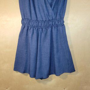 West Kei Blue V Neck Elastic Waist Shorts Romper Women Size S