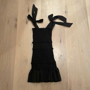 Size XS super comfy black smocked dress. This dress has only been worn 2-3 times and is almost like new! The material is stretchy and the bow straps are super cute!