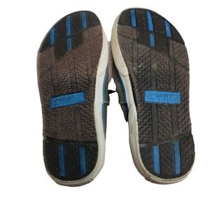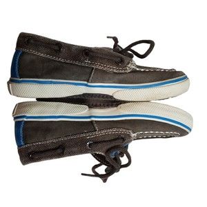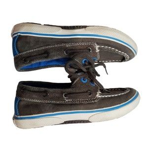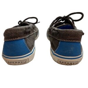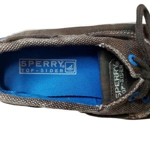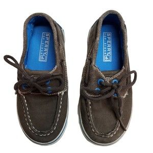 Sperry Top-Sider Boys Boat Shoes Size 11M Brown Canvas Blue Accents Tie Laces