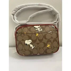 Coach X Peanuts Mini Jamie Camera Bag In Signature Canvas With Snoopy Woodstock