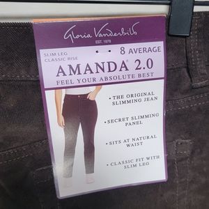 NWT Gloria Vanderbilt size 8 average corduroy Amanda 2.0 brown slim leg pants