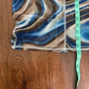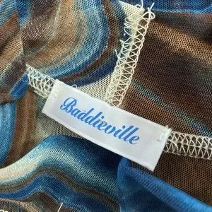 Item- Vtg 90s Y2k Mesh Dress S M Bodycon Swirl Sheer Mock Neck Stretch Blue Brown