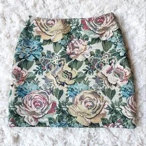 Beautiful mini skirt made by & Other Stories. Has a vintage appeal. Size 2. Like New. Zips closed on the side. Lined on the inside. Material is 53% cotton, 47% polyester. The inner lining is 100% viscose.