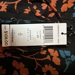 NWT BCBG Lace Up Front Floral with Metallic Threads Print Dress XS