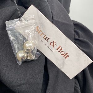 Strut & Bolt NWT Off The Shoulder Black Dress Chain Faux Pearl Large