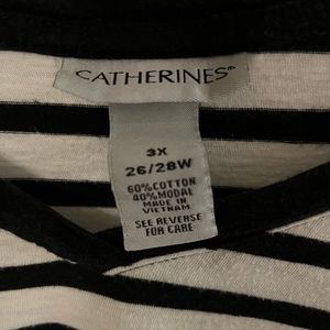 Catherine’s 3X (26/28W) short sleeve v-neck black and white striped tshirt