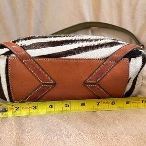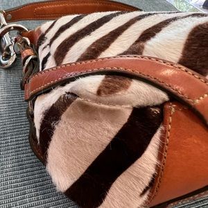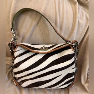 This vintage Coach bag was a favorite for a long time. There were a limited number of these bags made in the zebra hair calf. Dimensions in pictures. Have made every effort to show worn areas.