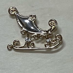 2007 Coldwater Creek Christmas Brooch Pin Sleigh Silver Tone Gold Tone Metal