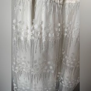 White, knee length dress with floral details. Bought from JessaKae worn for my bridal shower.