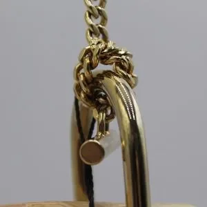 Crafted from supple leather in a distinctive saddle shape, the versatile handbag adds a touch of 70s elegance to all occasions. The sharp, modern lines are embellished with jewellery-inspired hardware in gold metal: a signature turn lock with chain detail, complemented by oversized metal rings with a knotted chain bow.