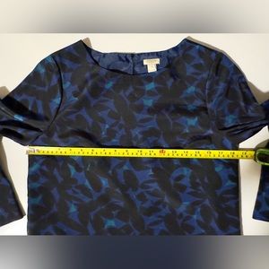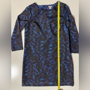 J Crew Navy Blue, Black and Green Floral Dress Three Quarter Sleeve sz 4