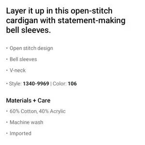 ⚡️SALE⚡️🆕️NWT AE Bell Sleeve Cardigan in 'Cream', Size Medium