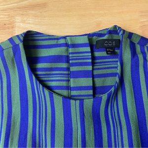 COS Blue Green Striped Sleeveless Viscose Blend A-Line Midi Dress Size 38 AU 10