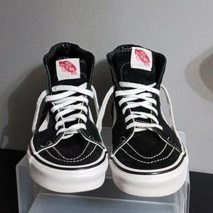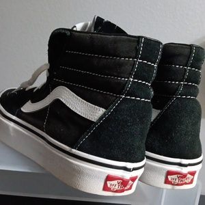 Vans Unisex Off The Wall Sk-8 HI suede/canvas black skateboard lace up. Womens 8.5 and Mens 7. Preowned in very good condition.. smoke-free home